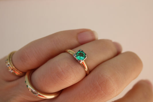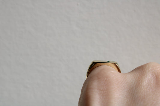 Everyday Solid Gold Pinky Ring with Flush Set Emeralds