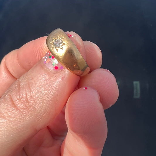 Pinky Ring with Diamond Bezel Set into Solid Yellow Gold